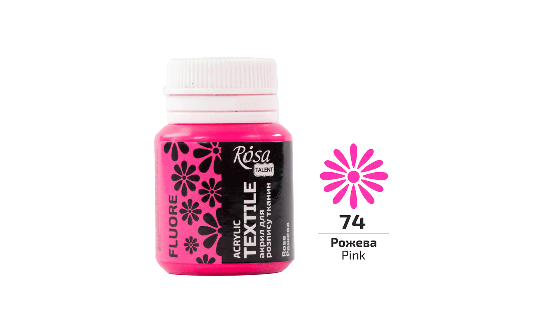 Farba Akrylowa do Tkanin, Róż fluorescencyjny (74), 20ml, ROSA Talent