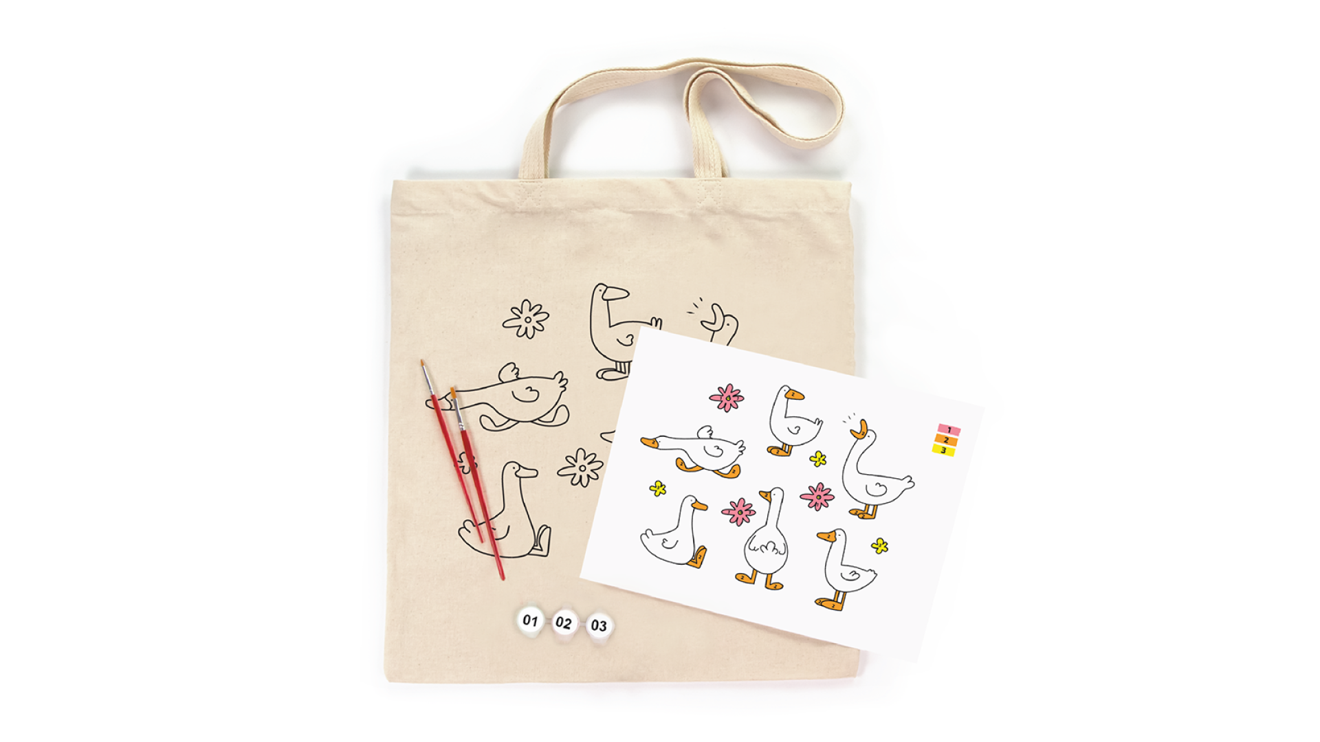 Zestaw Ecobag do kolorowania „Geese” marki ROSA Talent to kreatywna torba bawełniana przeznaczona do samodzielnego ozdabiania. Idealna propozycja dla dzieci, młodzieży oraz dorosłych, którzy chcą połączyć kreatywność z praktycznym zastosowaniem.