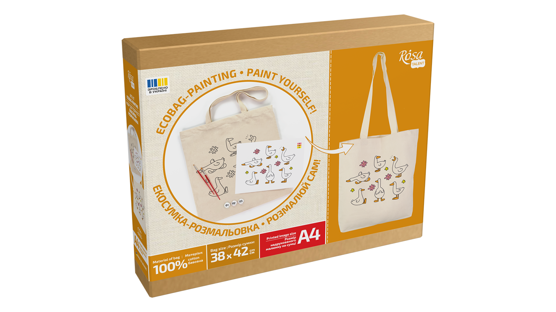 ROSA Talent Ecobag do kolorowania Geese 38×42 cm – bawełna 220 g/m²