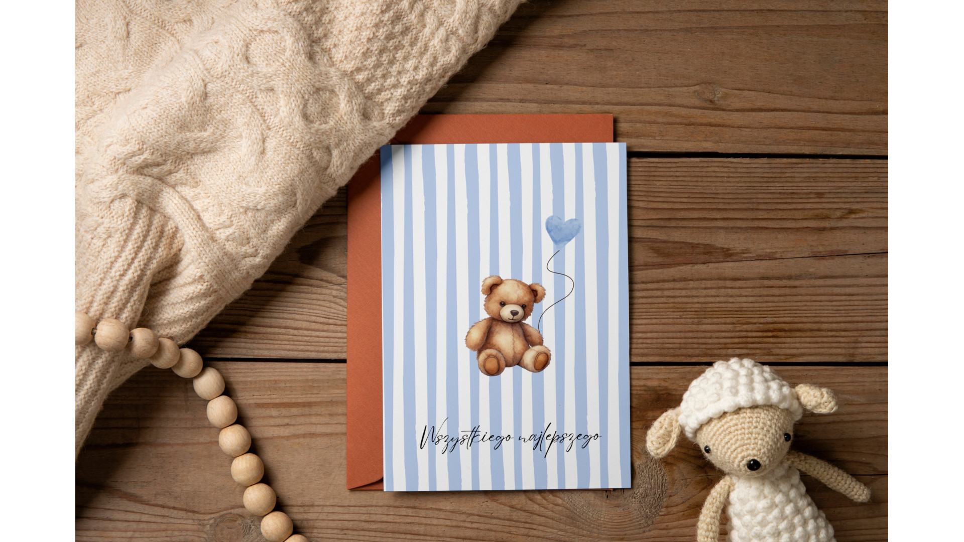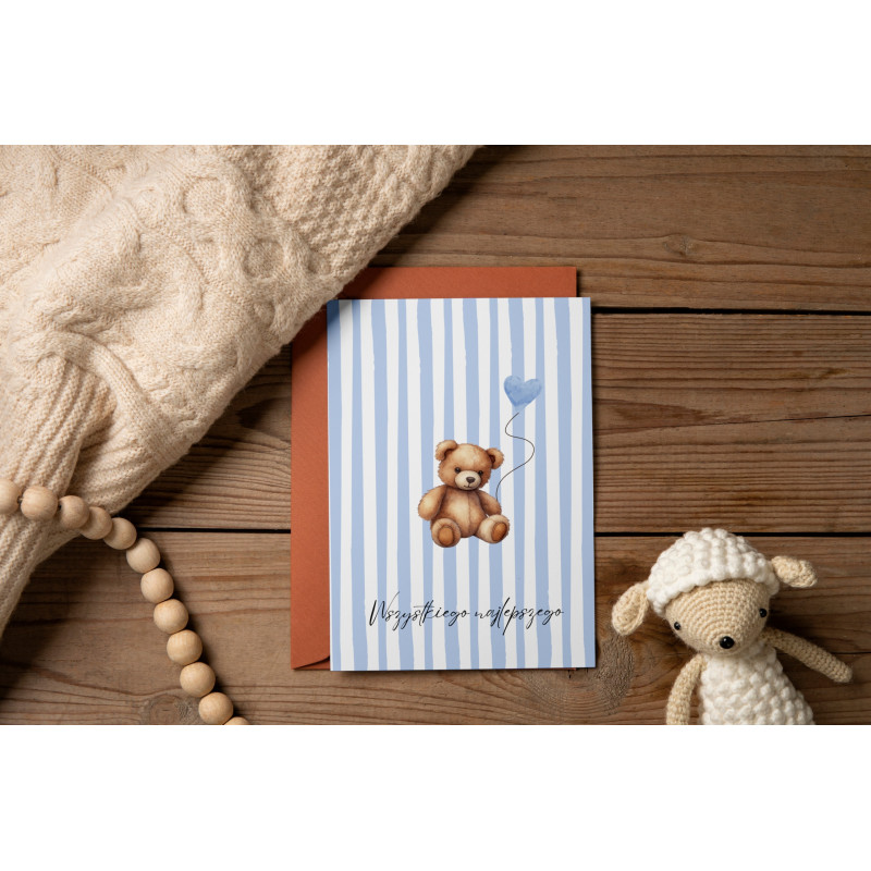 W zestawie znajduje się dopasowana koperta w formacie B6, dzięki czemu kartka jest gotowa do wręczenia lub wysłania.