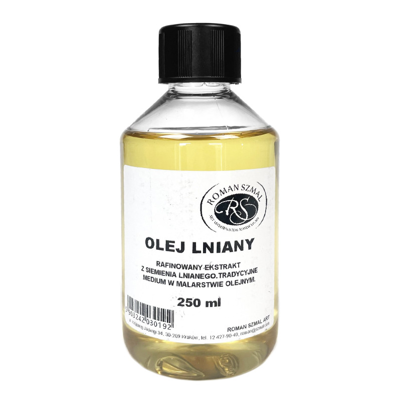Olej lniany to klasyczne medium malarskie stosowane w malarstwie olejnym. Służy do rozcieńczania farb olejnych, poprawia ich płynność, nasycenie koloru oraz elastyczność warstwy malarskiej. Ułatwia nakładanie farby i sprzyja pracy w technikach warstwowych.