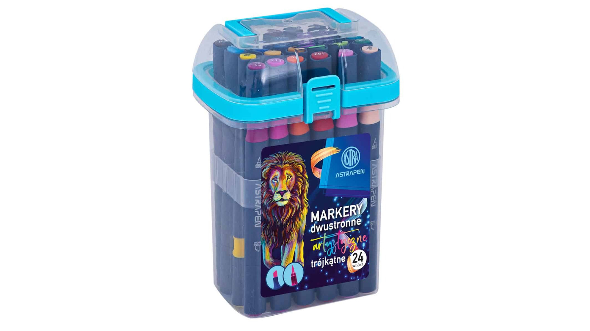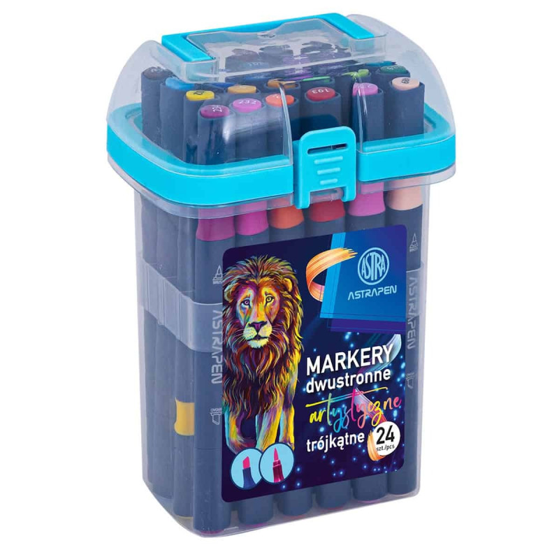 Markery artystyczne ASTRAPEN – zestaw 24 kolorów, dwustronne markery trójkątne