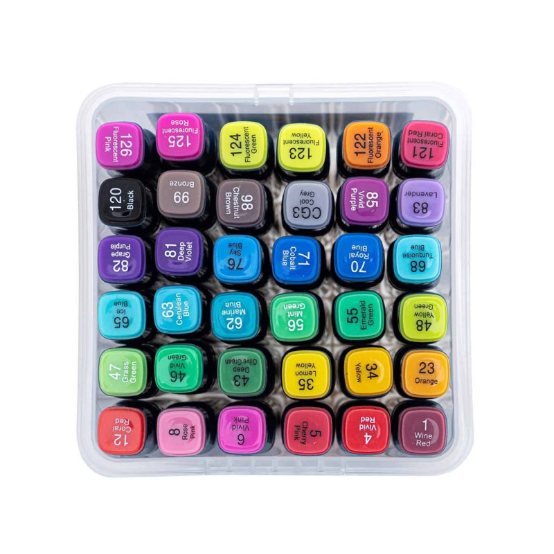Zestaw zawiera 36 intensywnych kolorów i zapakowany jest w praktyczne opakowanie ułatwiające przechowywanie markerów.