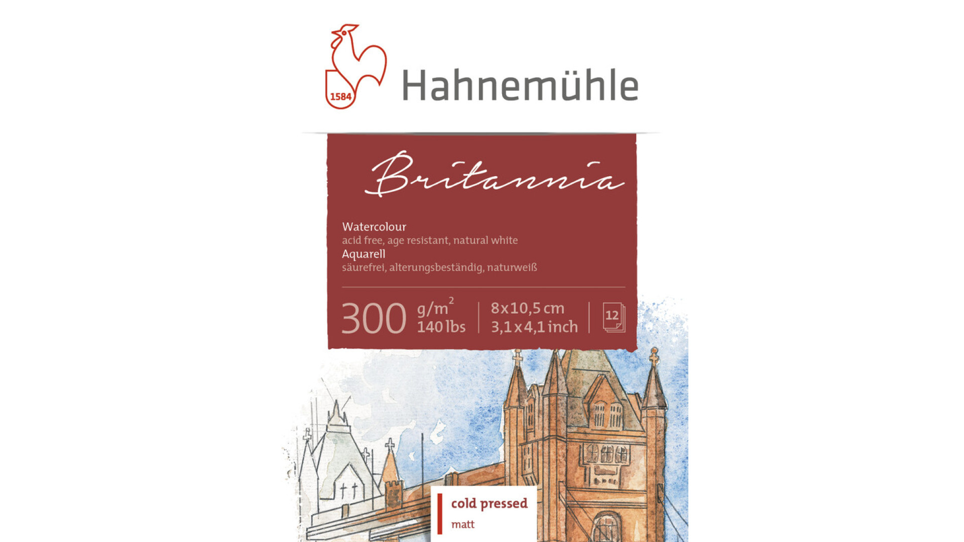 Hahnemuehle Britannia Blok akwarelowy 8 × 10,5 cm 300 g/m² 12 arkuszy CP