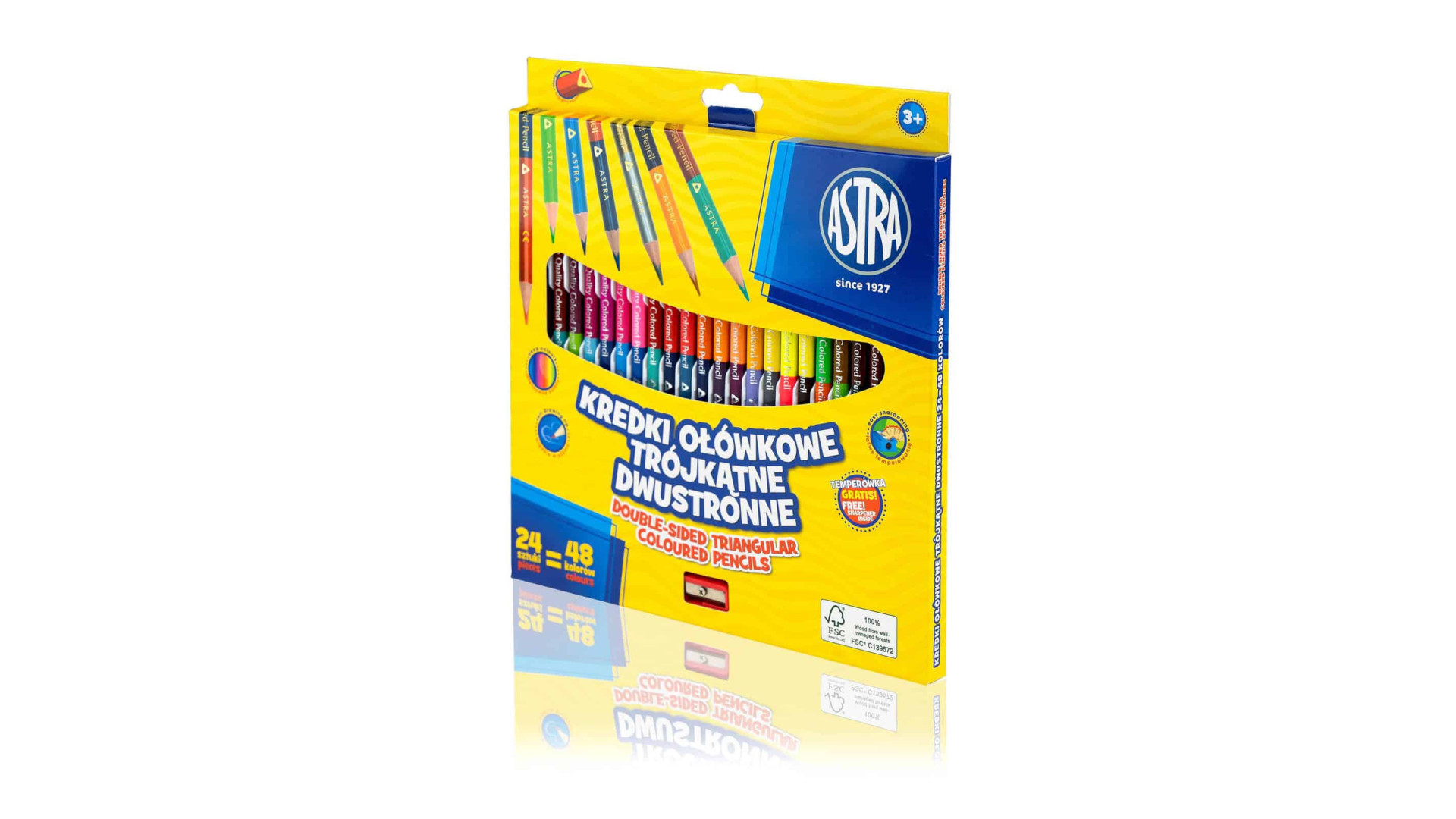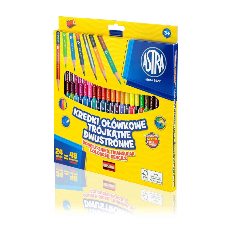 Kredki ołówkowe dwustronne trójkątne ASTRA – 24 szt. / 48 kolorów + temperówka